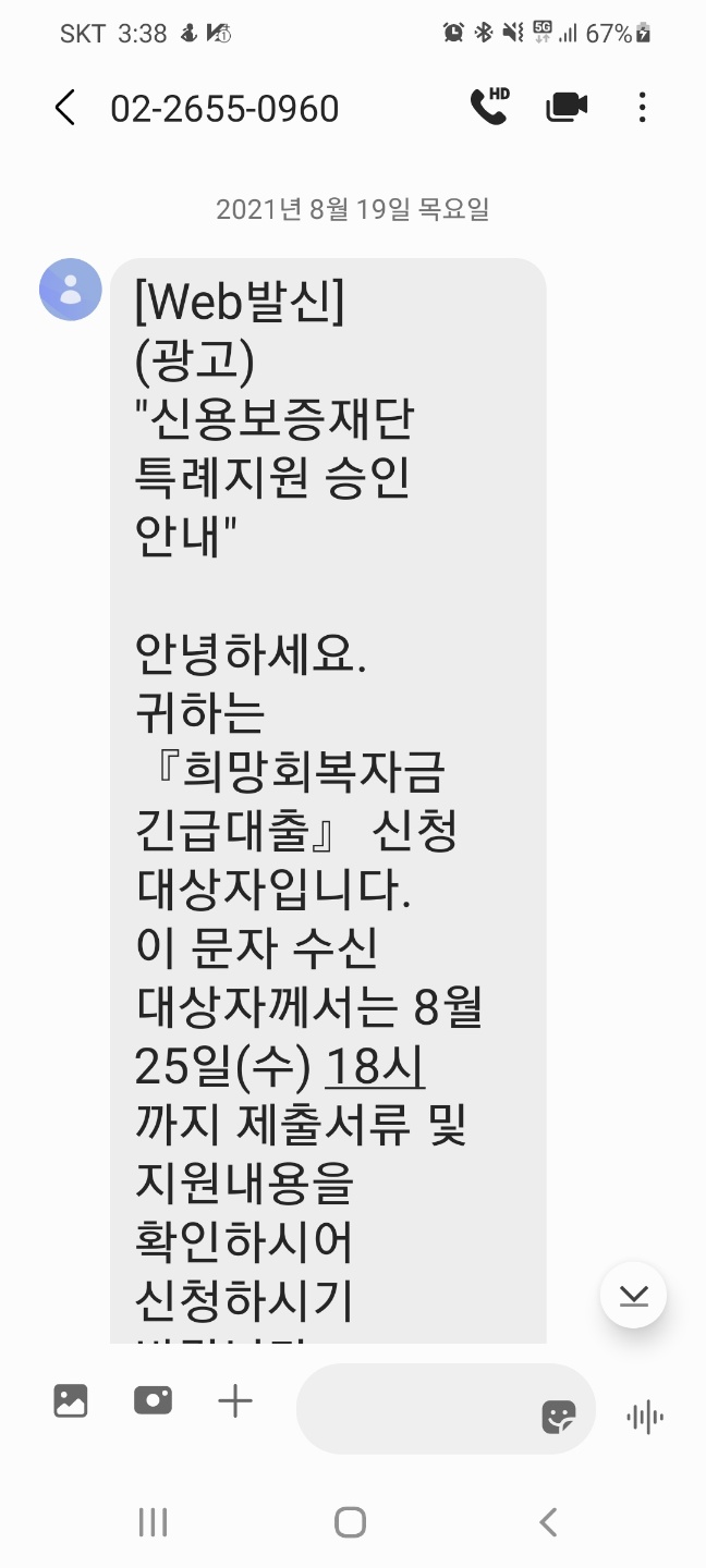 [ 신청방법 및 서류 ] ·금융기관 : KB국민은행 ·지원예산: 1조원 규모(재난지원금 추경안) ·보증내용 : 신용보증재단 100%(보증료 없음) ①신청기간 : 2021년 8월 25일(수) 18시 까지(신청인원이 예산을 초과할 경우 최종지급 금액이 변동될 수 있습니다.) ②제출서류 : 본인 신분증 외(별도 확인 필요시 추가 서류 증빙 필요) (문자 수신일로 부터 5영업일 이내 서류 적용, 기한 경과시 대출 신청 철회됩니다.)