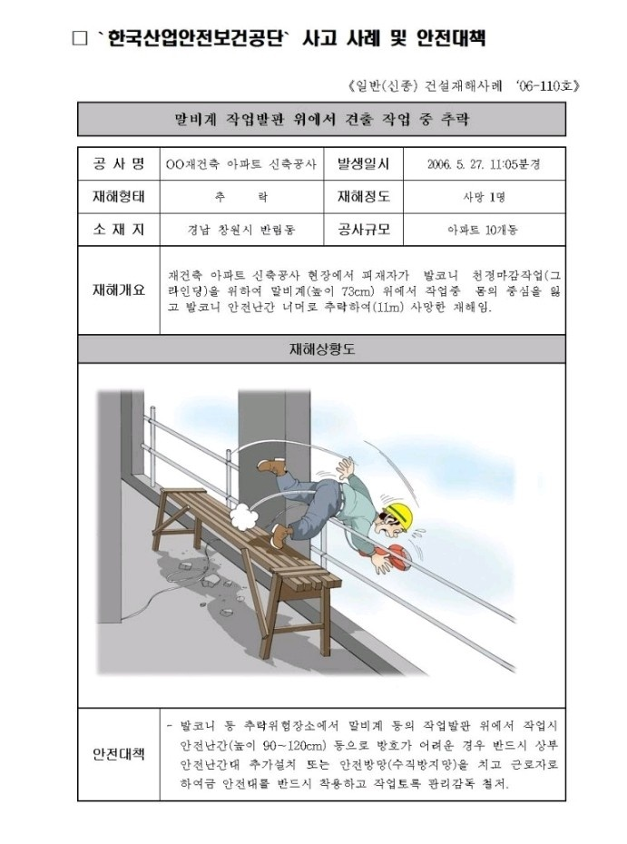 말비계 작업발판 위에서 견출 작업 중 추락